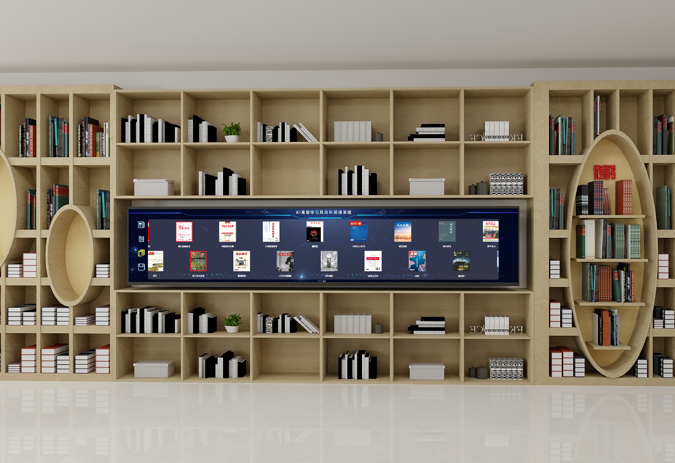 AI??磿?shū)柜里面的所有圖書(shū)都經(jīng)過(guò)嚴(yán)格的系統(tǒng)計(jì)算、統(tǒng)計(jì)出來(lái)的,以AI閱讀學(xué)習(xí)風(fēng)向標(biāo)展播系統(tǒng)為基礎(chǔ),實(shí)時(shí)統(tǒng)計(jì)、分析、整理當(dāng)前所有學(xué)員在AI閱覽桌上的學(xué)習(xí)情況,看了哪些內(nèi)容、閱讀時(shí)長(zhǎng)、深入研究時(shí)長(zhǎng)、查找內(nèi)容等實(shí)時(shí)閱讀情況,同時(shí)將所有內(nèi)容統(tǒng)計(jì)歸類(lèi)整理,形成實(shí)時(shí)的閱讀學(xué)習(xí)風(fēng)向標(biāo)報(bào)告,以此報(bào)告為基礎(chǔ),統(tǒng)計(jì)出常看圖書(shū),然后由管理人員擺放在??磿?shū)柜中,每隔15天更新一次。