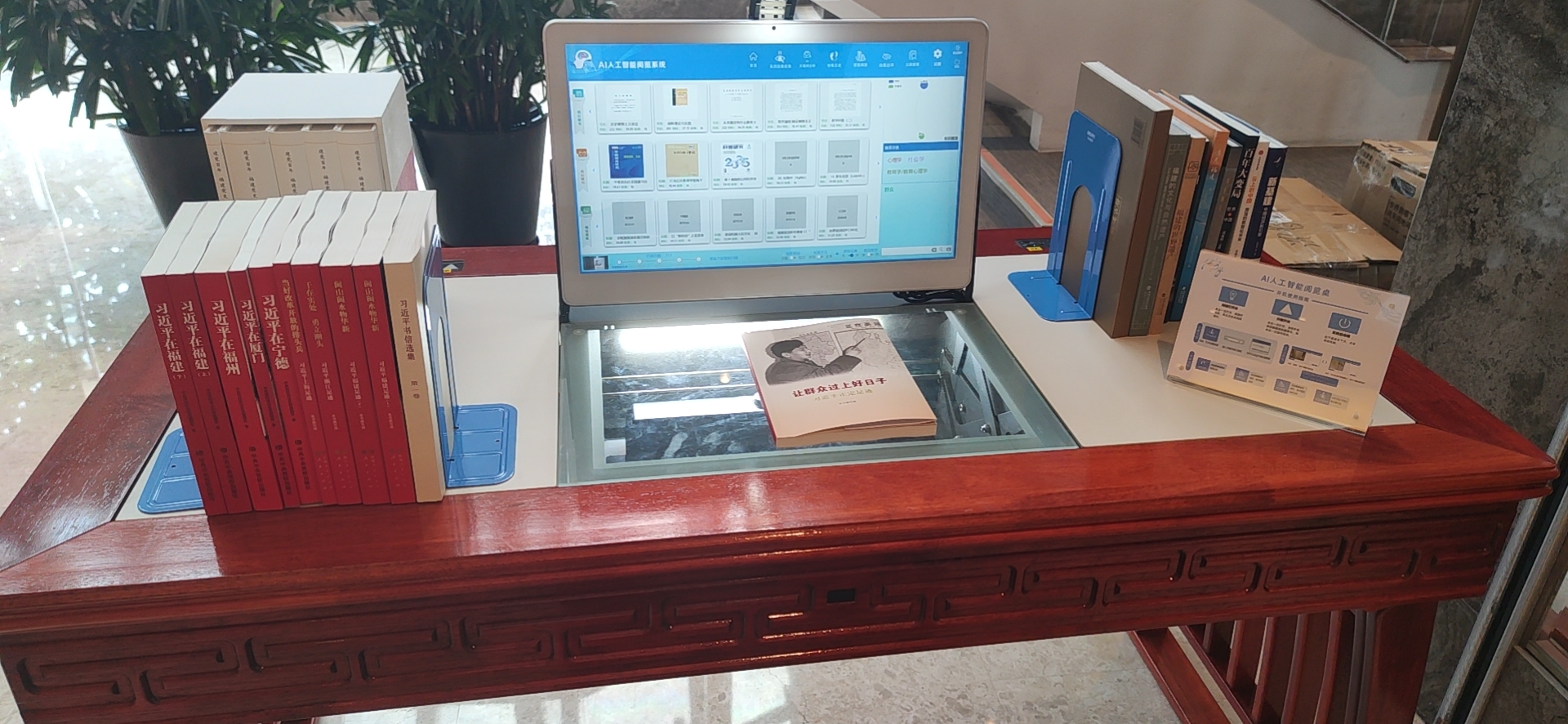 AI人工智能閱覽桌系統(tǒng),可以將普通閱覽室和電子閱覽室合二為一;還具備了智能學(xué)習(xí)閱讀功能,高度集成一體化,將學(xué)者、學(xué)習(xí)閱讀、場(chǎng)景資源合三為一;基于強(qiáng)大的場(chǎng)景館藏和后臺(tái)知識(shí)數(shù)據(jù)庫(kù),以AI人工智能閱覽桌為終端,為學(xué)習(xí)閱讀的讀者提供智能化的學(xué)習(xí)服務(wù),極大的提高學(xué)習(xí)閱讀效率、開(kāi)闊讀者的視野,將場(chǎng)景里面的紙質(zhì)圖書(shū)資源、數(shù)字資源充分利用到極限。